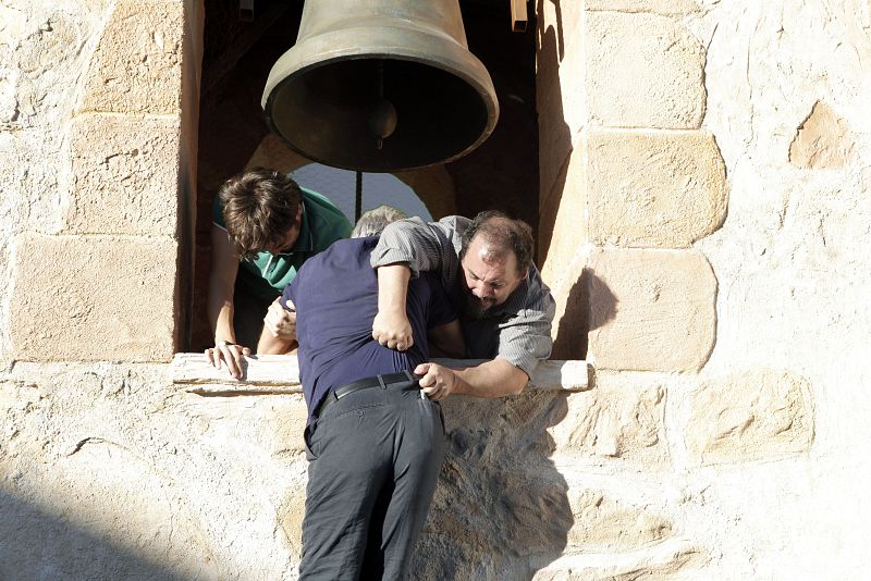 16.01.2014Con mucho esfuerzo y con más susto todavía, entre todos consiguen subirlo de nuevo al campanariortve