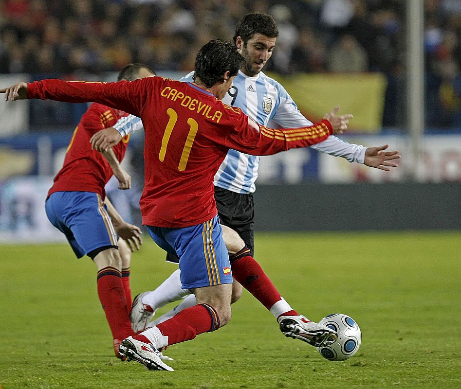 14.11.2009Capdevilla intenta anticiparse al delantero argentino Gonzalo Higuaín.EFE