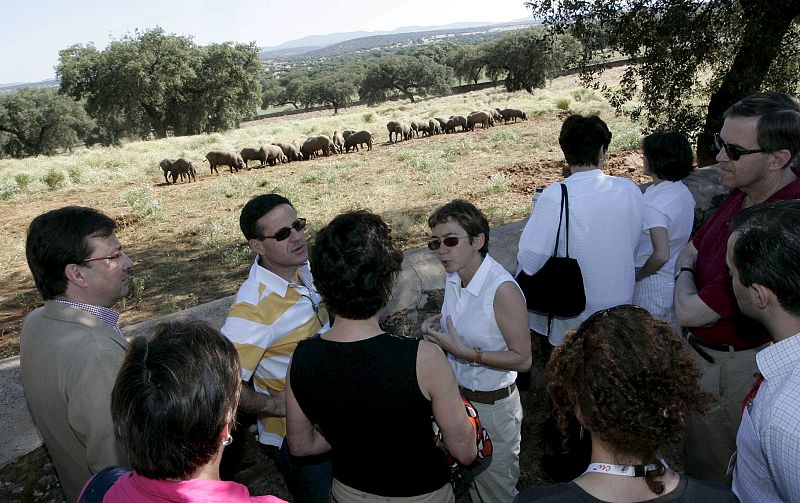 31.05.2010El presidente de la Junta de Extremadura, Guillermo Fernández Vara, junto a algunos de los ministros de Agricultura de la Unión Europea, durante la visita que han realizado a la finca San Rafael, en la primera jornada de la reunión informal que celebran en Mérida (Badajoz) y que profundizará en la contribución del sector agroalimentario a los retos económicos de la Unión Europea. (31/05/2010)EFE/Jero Morales