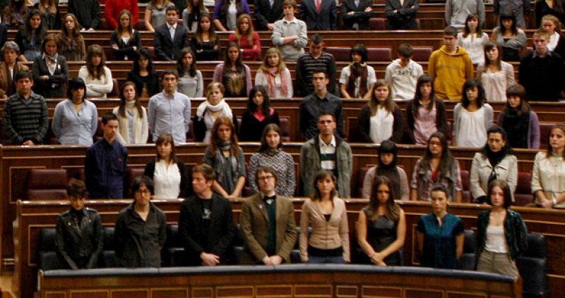 04.12.2009Manu Baqueiro, Marina San José e Itziar Miranda ocuparon los escaños en el Congreso antes de leer la Carta Magna.tve -