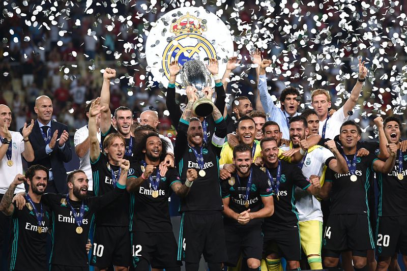 08.08.2017Los jugadores del Real Madrid celebran con el trofeo su victoria en la Supercopa de Europa.noticias