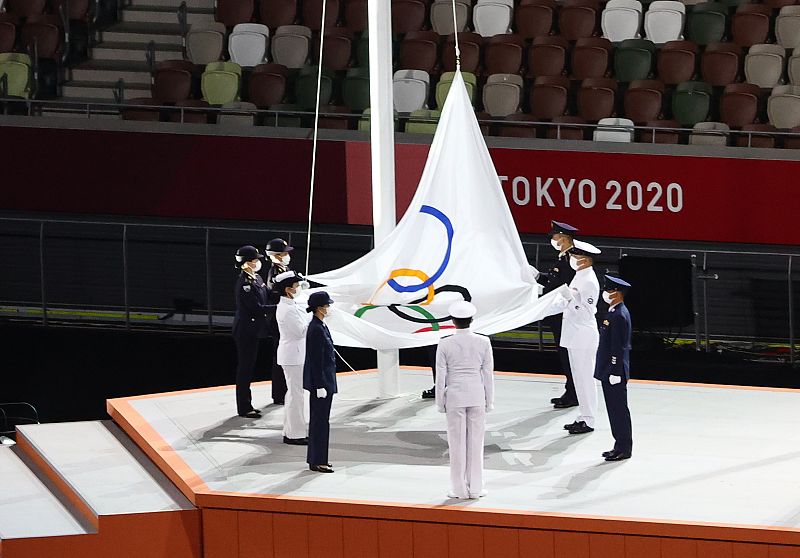 08.08.2021Momento en el que descuelgan la bandera olímpica para pasar el testigo a Paris 2024./dn