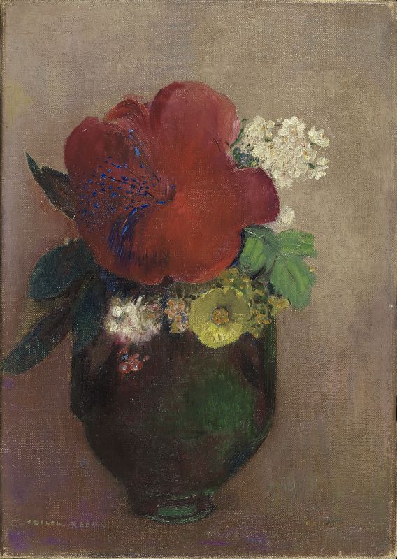 'Flores (antiguamente La Amapola Roja)' (después de 1895). Odilon Redon. Óleo sobre lienzo.