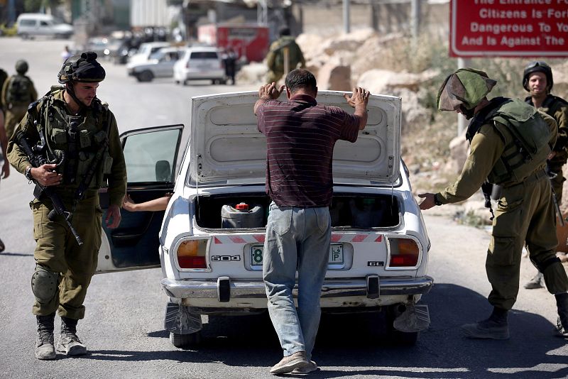 23.06.2014SLT02. Hebron (---), 15/06/2014.- Israeli soldiers stops a Palestinian for a security check during a military operation to search for three missing Israeli teenagers near the West Bank city of Hebron, 15 June 2014. Israeli troops arrests 80 Palestinians in sweeping West Bank raid in connection with the abduction of three Israeli teenagers last week. Israeli Prime Minister Benjamin Netanyahu says at a government meeting that Hamas is behind the kidnapping of the three Israelis. EFE/EPA/ABIR SULTANFE/EPA/ABIR SULTAN