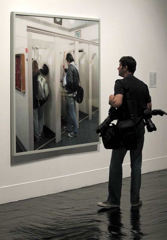 09.06.2010MD48. MADRID, 07/06/2010.- Un fotógrafo contempla algunos de los trabajos incluidos en la muestra "Entretiempos, instantes, intervalos, duraciones", una exposición que presenta la Fundación Santander dentro de Photoespaña 2010 con más de 200 fotografías de 17 prestigiosos artistas. EFE/Chema MoyaEFE/Chema Moya