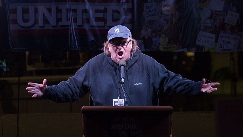 20.01.2017El director Michael Moore habla durantela manifestación "We Stand United" cerca de la Torre y el Hotel Trump de Nueva York un día antes de que el magnate jure su cargo como presidente de Estados Unidos.AFP PHOTO / Bryan R. Smith -