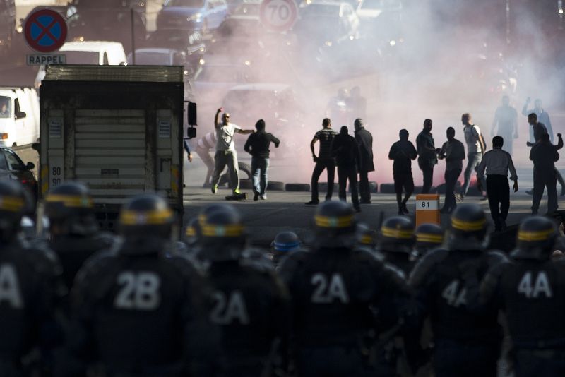 • Varios taxistas franceses se enfrentan a la policía antidisturbios mientras intentan interrumpir el tráfico en hora punta en una carretera de circunvalación en París