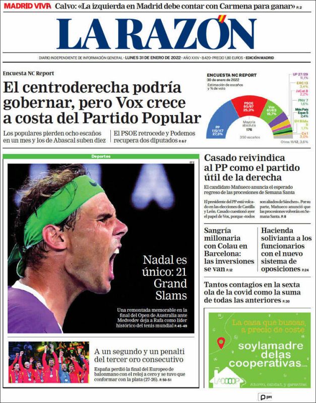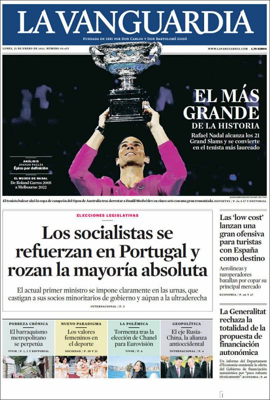 Rafa Nadal, en la prensa de todo el mundo por su 21º Grand Slam