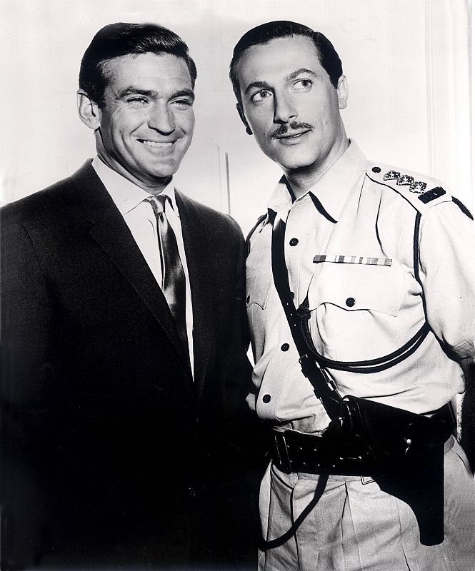 Rod Taylor (izq) como el periodista Glenn Evans y Lloyd Bochner como el inspector Neil Campbell en la serie televisiva 'Hong Kong' (1960-1961).
