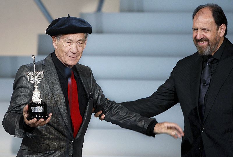23.09.2009SS52. SAN SEBASTIÁN, 23/09/09.- El actor británico Ian McKellen saluda tras recibir el Premio Donostia del Festival de Cine de San Sebastián de manos del actor José María Pou (dcha), en el auditorio Kursaal de la ciudad guipuzcoana. EFE/Javier EtxezarretaEFE/Javier Etxezarreta