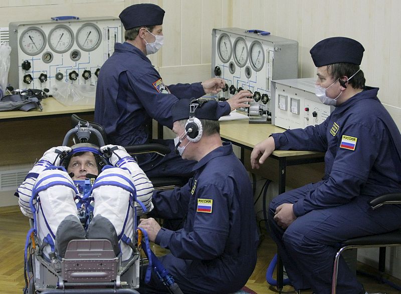 26.03.2009MOS05 BAIKONUR (KAZAKHSTAN) 26/3/2009.- Uno de los tripulantes de la misión que viajará por segunda vez a la Estación Espacial Internacional (EEI) abordo de la nave Soyuz TMA-14, el magnate informático estadounidense Charles Simonyi, durante los preparativos previos al lanzamiento en el cosmódromo Baikonur de Kazakhstan, hoy, jueves 26 de marzo. EFE/Yuri KochetkovEFE/Yuri Kochetkov