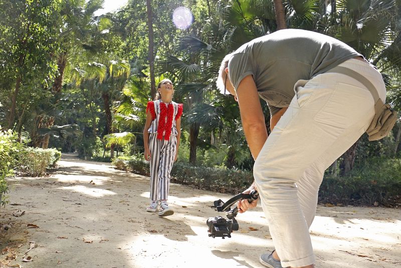 Soleá , en el parque de María Luisa (Sevilla) durante la grabación del videoclip de 'Palante'.
