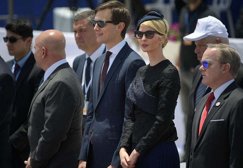 22.05.2017En la gira internacional también participan la hija de Trump, Ivanka, y su marido, Jared Kushner, asesor del presidente y de religión judía; en la image, ambos durante la ceremonia de bienvenida en el aeropuerto de Tel Aviv.AFP