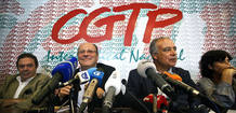 El secretario general de la Confederación General de Trabajadores de Portugal, Manuel Carvalho da Silva (2d), y el secretario general del sindicato UGT de Portugal, Joao Proenca (2i).EFE/Mario Cruz