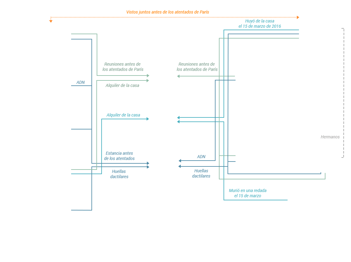 Los terroristas que atentaron en París y Bruselas están relacionados a través de alquileres de casa, viajes en coche, rastros de ADN. ¿Pertenecen a la misma célula o son dos redes? Pincha en cada uno de los elementos de este gráfico interactivo para descubrir los vínculos entre ambos atentados.