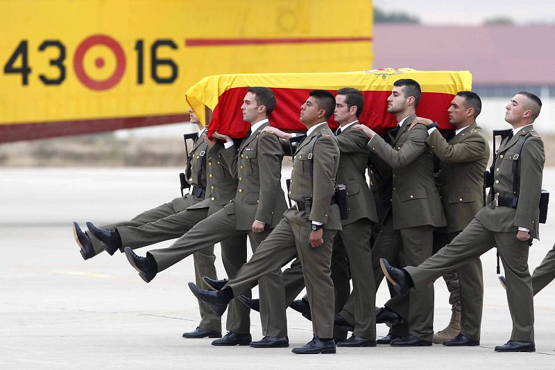 El avión con los restos mortales del militar español muerto ayer en Afganistán vuela ya de regreso a España. Aterrizará en la base de Torrejón donde será recibido por familiares y autoridades.