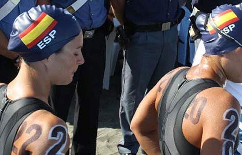 - Los cinco integrantes del equipo español de Aguas Abiertas compiten en el Puerto de Ostia
