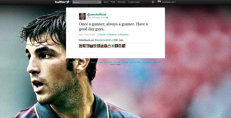 - El reciente fichaje del Barça utiliza Twitter para despedirse del Arsenal