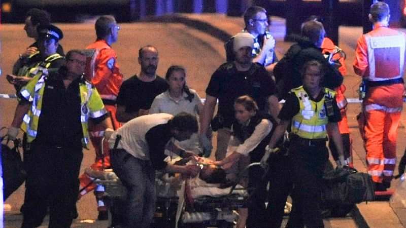 Una furgoneta ha arrollado a varios viandantes en el Puente de Londres. Los terroristas han abandonado el vehículo apuñalando a los peatones para terminar en el mercado de Borough, donde han sido abatidos. May presidirá este domingo una reunión del comité de emergencia Cobra.