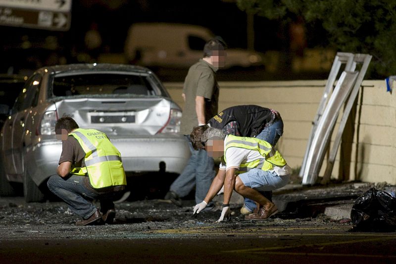 Los dos guardias civiles que han muerto este jueves en Calvià (Mallorca) debido a la explosión del coche patrulla en el que viajaban eran muy jóvenes y estaban recién salidos de la Academia. Hay varios vehículos destrozados y al menos un herido grave que ya ha sido hospitalizado. Se cree que puede haber varios heridos entre los turistas que paseaban por la zona y las personas que salían del Centro de Salud que hay pegado al cuartel junto al que ha explotado el coche. (30.07.2009).