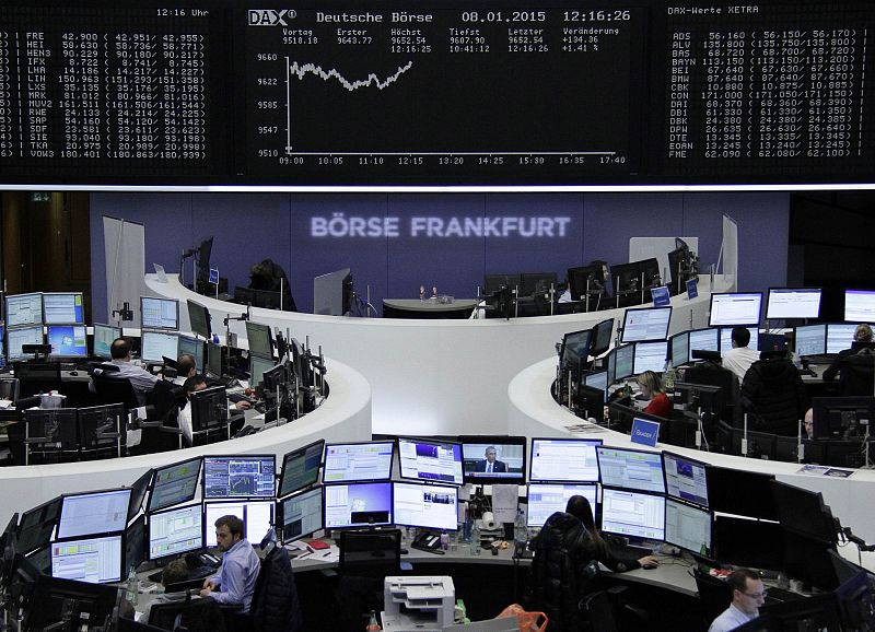 En la primera sesión de 2015 de apertura de la Bolsa española, la prima de riesgo ha caído hasta el mínimo de 98 puntos básicos, que no se alcanzaba desde mayo de 2010. El bono español a diez años está en el 1,5%, un mínimo histórico, y el euro ha llegado al mínimo de hace cuatro años, 1,20 dólares.
