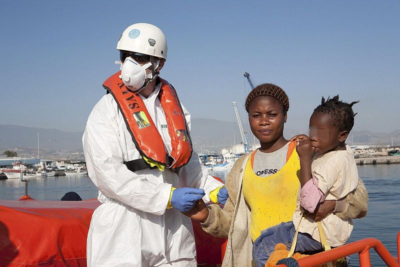 - Los rescatados llegan al puerto de Almería y son atendidos por hipotermia