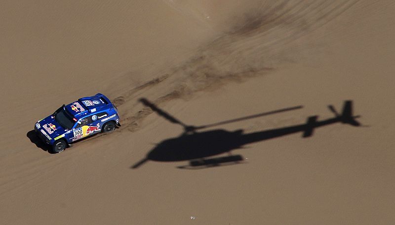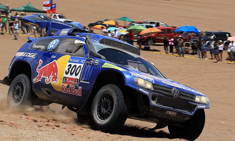 El qatarí Al Attiyah sacó 1:20 al madrileño Carlos Sainz y está a 1:22 de Carlos Sainz en la general. Marc Coma (KTM) quedó tercero y sigue líder en la general de motos. (09/01/2011)