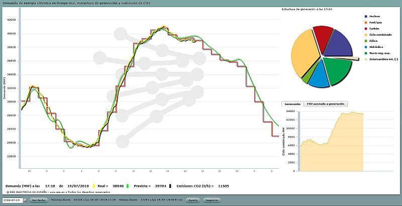 - A las 13.19 horas se ha alcanzado un pico de consumo de 41.127 MW