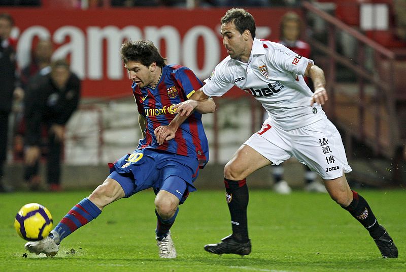 Leo Messi ha reconocido que estaba ansioso por marcar a Andrés Palop después de que el meta del Sevilla frustrara varias de sus ocasiones en Copa (17/01/2010)