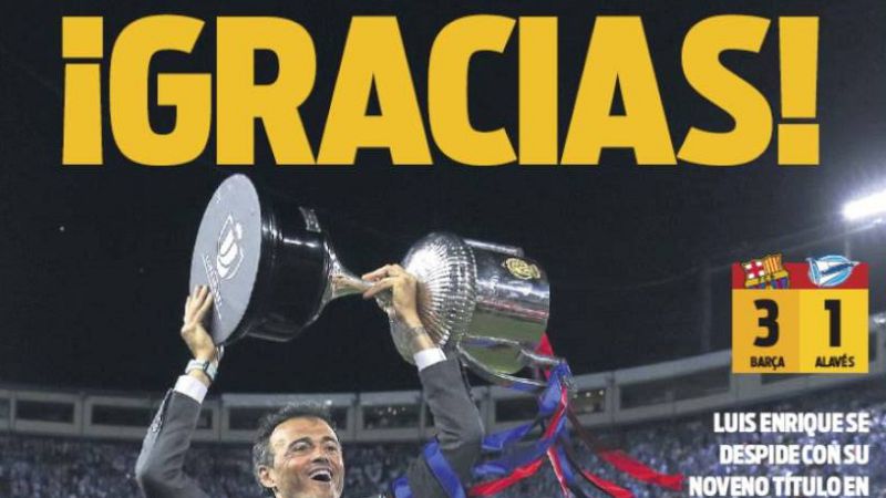 El entrenador del FC Barcelona, Luis Enrique Martínez, ha asegurado este viernes que para él la final de la Copa del Rey de este sábado ante el Alavés es un partido "especial" porque le brinda la oportunidad de cerrar su etapa en el banquillo blaugrana con un título más, el que sería el noveno, y ha señalado la dificultad de lograrlo ante el equipo "revelación" de la Liga. Por su parte, Gerard Piqué ha afirmado que desea que su técnico se vaya "con un título más", en el último partido del entrenador asturiano dirigiendo al conjunto azulgrana.