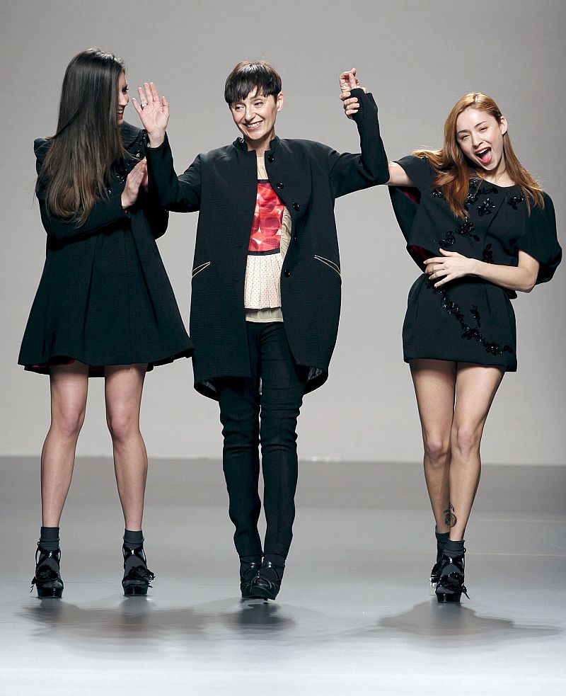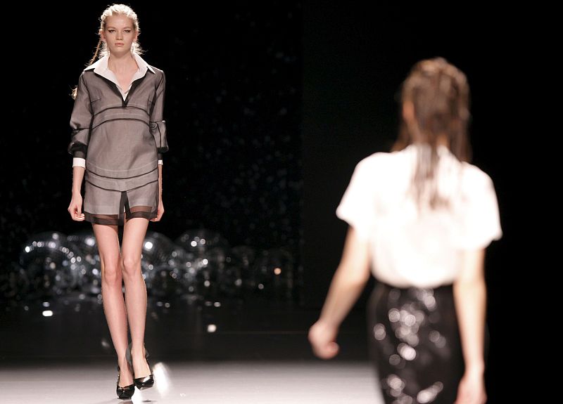 Miriam Ocariz se mueve en la contradicción y combina el futurismo geométrico con una ingenuidad propia de Caperucita para una colección delicada a la vez que agresiva. Y lo hace de forma brillante con la superposición de prendas y tejidos. Así, hay vestidos y faldas fruncidas con vuelo en lanas y en baquilla mezclada con lurex para conseguir el aspecto "chanel". Pero también vestidos muy ceñidos de punto que describen líneas con lentejuelas o retales de gasa estampados en tonos oscuros y con matices cereza, azul y verde. 21/02/10.