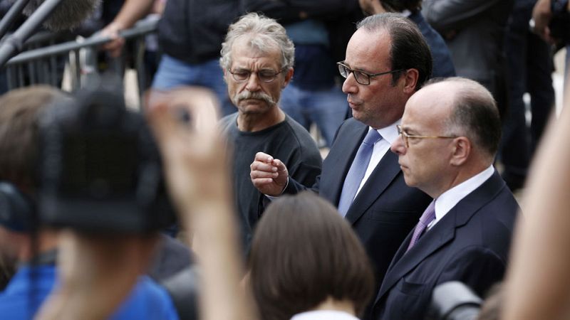 El presidente francés, François Hollande, ha asegurado que los dos autores de la toma de rehenes en una iglesia de Saint Etienne du Rouvray, junto a la ciudad normanda de Rouen, eran "terroristas que reivindicaron pertenecer al Estado Islámico". En una intervención ante la parroquia atacada, Hollande, originario de la vecina Rouen, ha dicho que "el Estado Islámico nos ha declarado la guerra" y "tenemos que librarla con todos los medios".