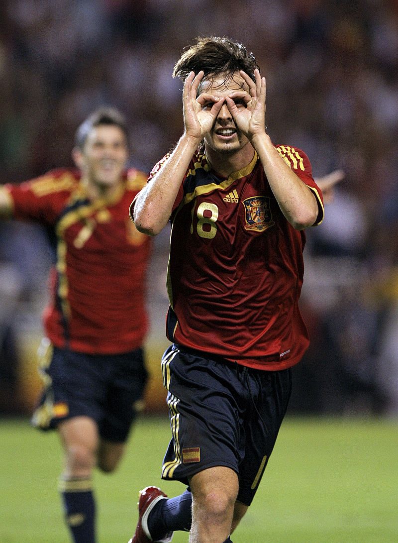 El valencianista David Silva explica la celebración de sus dos goles ante Bélgica (05/09/2009).