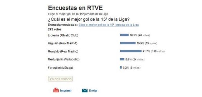 - El portugués ganó las votaciones del mejor gol de la jornada con el 41.7%