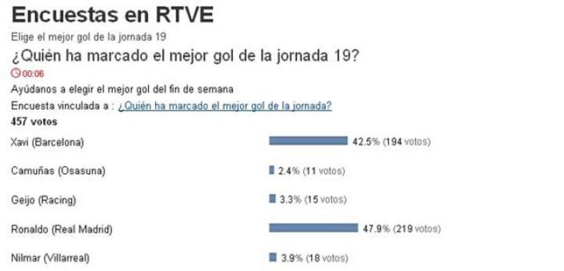 - Los internautas eligen el gol de Crisitano con un 47,9% de los votos