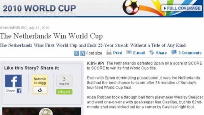 - Habían dejado la noticia preparada y sin rellenar el resultado
