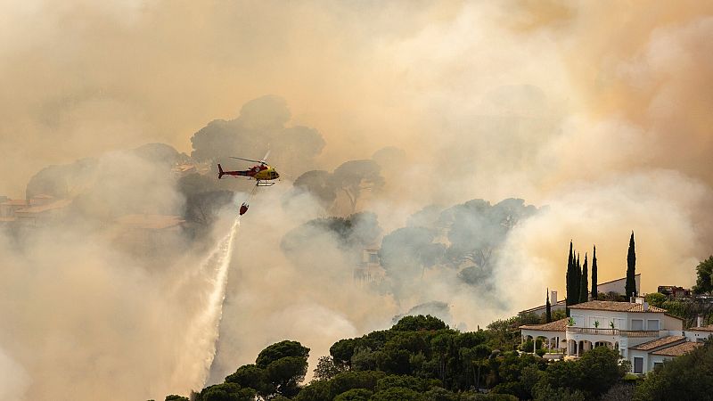 Es parte de la zona quemada en Llança, en Girona... Un incendio que sigue activo, con algo más del sesenta por ciento del perímtero estabilizado pero inestable... El objetivo de esta noche es que el fuego no se extienda más allá de las 420 hectáreas ya quemadas... En este pabellón podrán pasar la noche lo vecinos de las tres urbanizaciones que fueron desalojadas... La gran mayoría, podrán volver a casa a partir de esta medianoche... Hay 90 dotaciones terrestres y quince medios aéreos trabajando en el incendio hasta que haya visibilidad...La principal hipótesis del origen del fuego que empezó el viernes por la noche, es una colilla mal apagada… Los Mossos están analizandóla para tratar de encontrar restos de ADN.FOTOGRAFÍA: EFE/Quique Garcia.