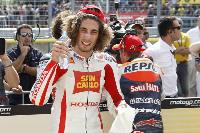 El Gran Premio de Indianápolis ha vuelto ha dejar claro que los pilotos españoles son los que mandan en el Mundial de MotoGP. De nueve podios posibles, los españoles ocuparon seis. Pedrosa y Lorenzo en MotoGP, Elías y SImón en Moto2, y Terol y Pol Espargaró en 125cc (30/08/2010).