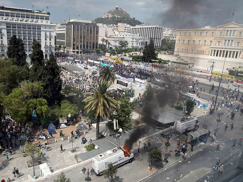 - Enfrentamientos entre policía y manifestantes en la plaza Sintagma de Atenas