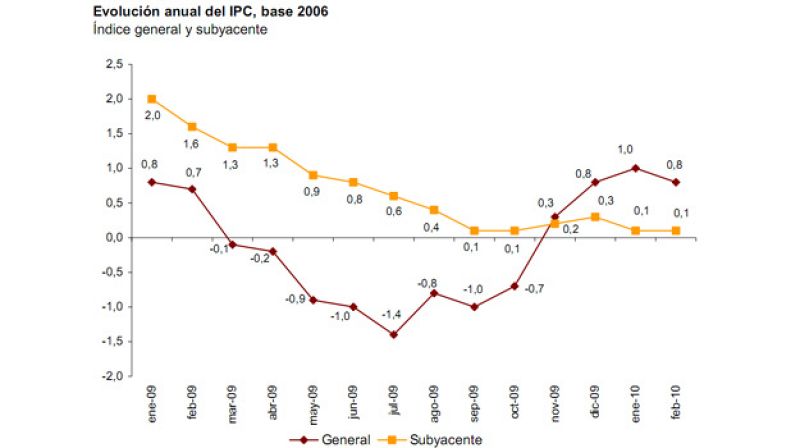 - La inflación subyacente se sitúa en el 0,1%, la misma que en enero