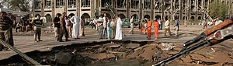 Las autoridades iraquíes han elevado a 132 el número de muertos y 520 el de heridos en el doble atentado perpetrado en el centro de Bagdad, el más sangriento del año. 25/10/09.