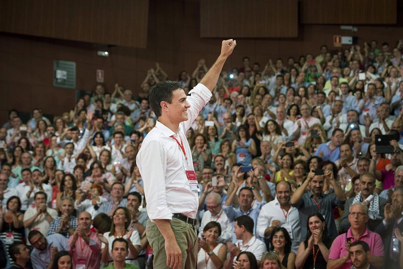 Pedro Sánchez ha sido ratificado por aclamación como secretario general del partido socialista. Sánchez, tras ganar las primarias del 13 julio. Su nombramiento no se ha sometido a votación de los delegados por primera vez en los 135 años de historia del PSOE.