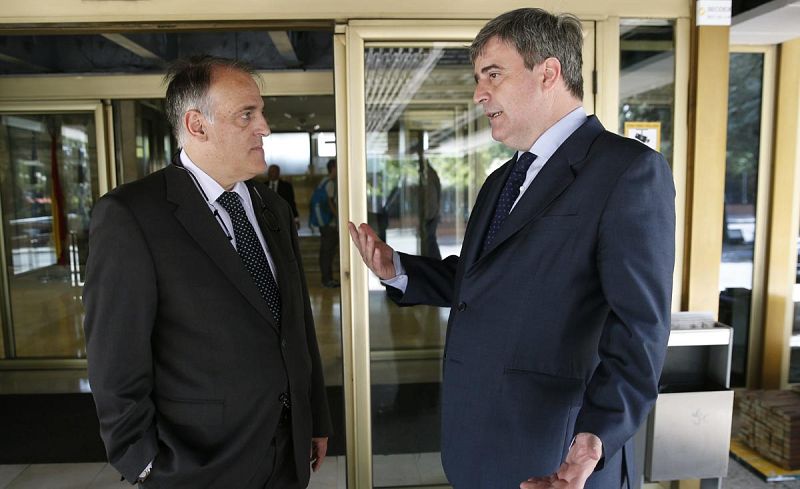 - El presidente de la LFP acompaña al Atlético en su gira veraniega