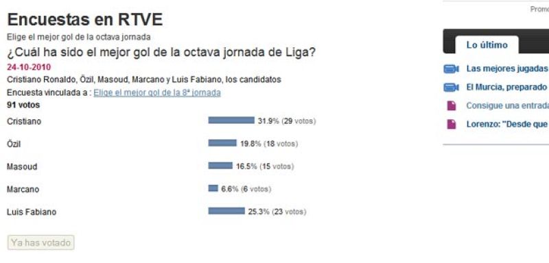 Y cuarto gol de Cristiano ante el Racing, este de penalti. La falta fue sobre Di María (23/10/2010)