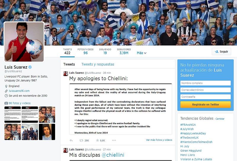 - El jugador espera que se le reduzca la sanción por morder a Chiellini