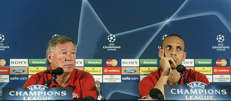 El Manchester United prepara la final de la Champions frente al Barcelona concienciados para frenar a Leo Messi con la notable ausencia de Rio Ferdinand en la defensa por lesión. Mientras, su entrenador Alex Ferguson alaba el estilo de fútbol del Barcelona. (21/05/09).