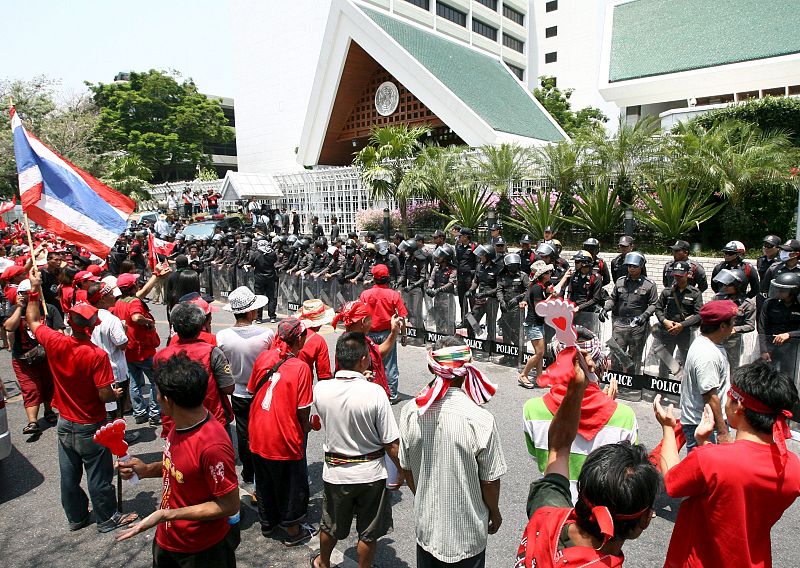 - Los agentes han instado a los "camisas rojas" a que dejen las protestas
