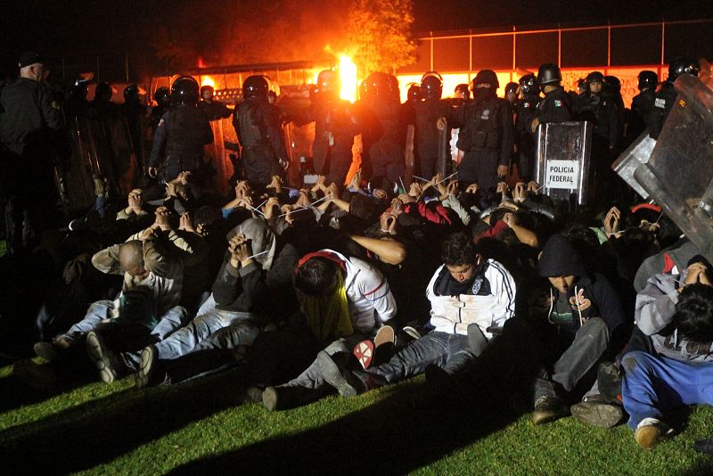 - El día anterior, jóvenes encapuchados exigieron la liberación de los detenidos...