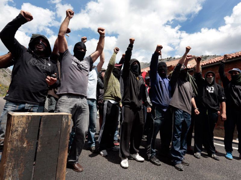 Ya han pasado 22 días desde que comenzaron las protestas pero los mineros no están dispuestos a dejar la lucha. Hoy hemos vuelto a ver barricadas y cortes de carreteras, y también enfrentamientos entre los mineros y la policía. No estamos porque nos gusta venir aquí a cortar carreteras ni molestar a la gente del pueblo, lo que pasa es que no nos dan otra opción. Los habitantes de las cuencas, cuya economía depende fundamentalmente del carbon, han querido mostrar su apoyo con una huelga general en los pueblos mineros. Seguimiento total, según los sindicatos: los comercios estaban hoy cerrados y en las calles no había movimiento. Una imagen parecida en Andorra, un pueblo de la provincia de Teruel donde la minería es básica para su supervivencia económica