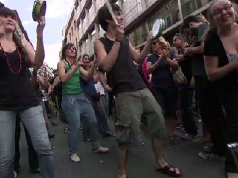 Cuando antes de las elecciones algunos temían un posible desalojo de Acampada Sol, la gente acudió para apoyar el movimiento. También en la jornada de reflexión. Las cámaras de Crónicas recogieron el momento en que Ecobloco, la batucada de Ecologistas en Acción, amenizó la jornada de reflexión en la Puerta del Sol